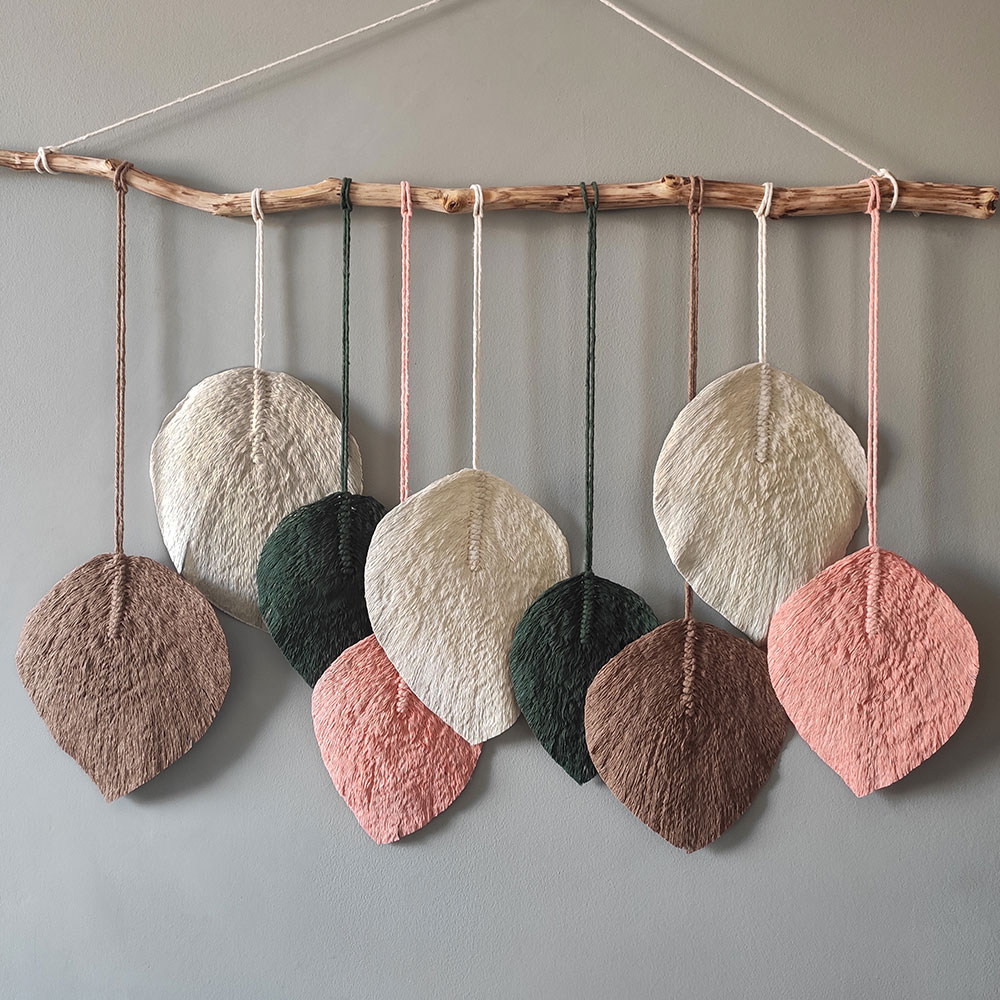 Decorar com folhagens já é tendência, imagine agora a  folha feita a mão utilizando a técnica do macramê, fica incrível !